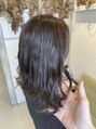 鎖骨ラインにカットし、外ハネ、内巻きどちらにもスタイリングできるようにカットしますカラーはモカグレージュ系で透明感を出します