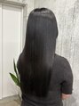地毛風だけどどこか垢抜けて見える、透け感×ツヤ感たっぷりのストレートロング。重く見えがちな黒髪も、光を通すカラーと毛先のまとまりで、やわらかく軽やかな印象に。清楚な雰囲気もありつつ、大人っぽく仕上げたい方におすすめです◎