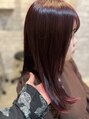 室内でも自然光でも映える、深みのあるワインレッドカラー。赤みがしっかり出るように調整し、ツヤと透明感を同時に演出しています。ロングスタイルでも重たく見えず、上品で柔らかな印象に。
