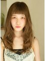 短めの前髪に中間から毛先にかけてパーマで動きをプラス。より立体感を出すためにウィービングでハイライトを入れて、全体をオレンジに系に仕上げました。前髪のストレートなラインと顔まわりのウェーブで差をつけた甘辛ミックススタイルです。
