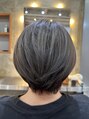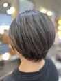 白髪を無理に隠さず、明るめグレージュで自然になじませるスタイル。丸みのあるショートボブは、カジュアルな服にも似合って毎日がちょっと楽になる。大人のための軽やかショートです。