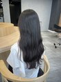 スーパーロングのゆるパーマスタイル。大きめのロッドでしっかりかけることで長さの重みでダレにくくしあげてあります。パーマでのダメージをオージュアトリートメントで最大限カバーして艶やかな仕上がりに。