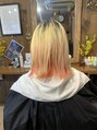 インナー→レッド、ベース→ピンク、その他に濃いパープル、ラベンダーカラーをランダムに入れて春色全開のデザインカラーの完成です!左右で見え方が違ってめちゃくちゃ可愛いと私の中で話題です。全体は勇気いる方はポイントでも有り寄りの有りです!
