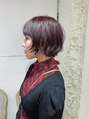 ミディアムヘアからばっさりマッシュショートカラーはカシスカラーでオシャレ感と抜け感をプラス