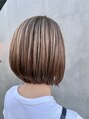 前回のハイライトを活かしてオンカラー。スタイリングオイルでつやつやなミニボブに。
