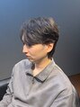 柔らかな質感に仕上げたメンズショートのセンターパート。襟足は厚めに残したウルフスタイルで、大人の知的さと色気をプラス。メンズカットのみでフェザーパーマ風に仕上げた動きが魅力です。直毛の方はメンズパーマがおすすめ。好感度の高いモテスタイル!