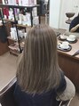退色をしてオレンジ味をおびた髪にオリーブ系の色を乗せて、新しく導入したフローディアトリートメントでしっとり艶々に♪
