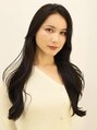 ナチュラルな印象の黒髪ロングヘアを、クールでスタイリッシュな印象のかきあげ前髪でアレンジ。全体はゆるめのウェーブで軽やかな印象に仕上げています。
