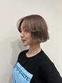 内巻きも外ハネもできるコンパクトボブ☆長めに残した前髪もアレンジのポイントです♪カラーはワンブリーチのラベンダーグレージュ。