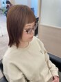 髪質改善カラーで明るめアッシュ系で染めています。オン眉バンクが可愛いです◎