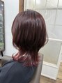 カラー。元々上は10レベル位の明るさで、横の下はブリーチ3回、後ろの下はブリーチ2回やってあって、ピンクラベンダーを全体にカラーリング。で、こんな感じに。何色に見えますか?(^^;)