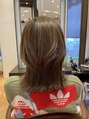 肩着く長さにボブが乗っかっているようなスタイルです。スタイリングは顔まわりととバックはリバース気味に。その他の毛先はかるーく外ハネ。