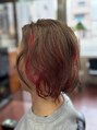 高めの刈り上げに、ボブ風の2ブロック、鮮やか系の赤のインナーカラーをご希望のお客様!しっかり入ったお色に気分も晴れ晴れですね!