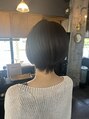 オイルでスタイリングするだけでまとまるショートボブ。頭の形や首が綺麗に見えるバランスでカット◎オリーブ系カラーで柔らかい印象に。髪質改善/縮毛矯正/ボブ/ダブルカラー/ヘアセット/ストレート/ヘッドスパ/インナーカラー/ハイライト/白髪ぼかし/白髪染