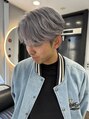 メンズ大人っぽシルバー(ハイトーンカラー/ブリーチカラー/ブリーチリタッチ/デザインカラー/ボブ/メンズヘア/メンズハイトーン/メンズパーマ/センターパート/ブロンド/外国人風ヘア/エンドカラー/抜きっぱなしブロンド/ケアブリーチ)