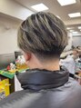横後ろ、低めの刈り上げ幅も狭めなテーパーフェードセンターパートにベースカットをし、ハイライトを多めに入れて立体感と軽さや動きが出てみえるように低めのフェードカットなので、マッシュやセンターパートにも可能なフェードカットになっております!