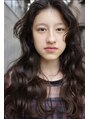 ロングヘアのウェーブヘアスタイル。柔らかなカールがクールな印象のロングヘアをソフトに彩ってくれます。【京都美容室/河原町/四条/三条/カールヘア/カーリーヘア/ウェーブヘア】
