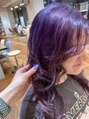 しっかりと顔まわりに動きをつけたレイヤーカットに深みのあるツヤ感パープルを合わせたスタイル◯レイヤーの入れ方やカラーのトーンは、雰囲気に合わせてご提案します。パープルは色落ちも綺麗になるのでオススメのカラーです。