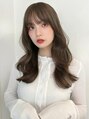巻き髪レイヤー/韓国ヘア/柔らかベージュ/くすみベージュ