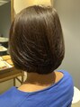 ボブでも幼くならないように前髪はかきあげる感じに。ハニーパックで根元からしっかり立ち上がるように仕上がってます。美容液カラーとオージュアトリートメントで乾燥をしっかりふせいでいます。
