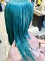 ブリーチ1~2回必須のハイトーンペール系ブルーグリーンカラーですレイヤーロングベースにかなり目を惹くカラーで目立っちゃいましょう!ケアがかなり大事になるのでサロンでトリートメントはもちろん、ホームケアも必須ですがハイトーンはかわいいですよ