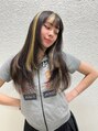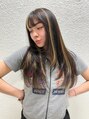 レイヤーカット×デザインカラースタイルです。ベースカラーはナチュラルブラウンでランダムにハイライトとオフブラックでデザインしました。