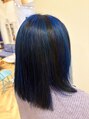 黒髪のベースにハイライト☆オンカラーは塩基性カラーのブルーです!