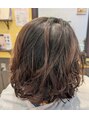 サイドのボリュームは抑えつつ、毛先のカールはしっかりめ。頭の形や毛量を考慮し、トップは立ち上がるようにしました。