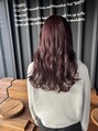 ブリーチなしのチェリーピンクのロングスタイル!顔周りはレイヤーを入れて、動きのあるスタイルに!