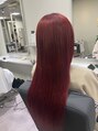 赤髪を続けているお客様!根元をブリーチでリタッチしてカラーで赤をいれました!同じ色を続けることで色持ちが良くなります!エクステにはないお色味なので赤系のエクステを染めて作っています!エクステを染める場合、事前のご連絡が必須になります!