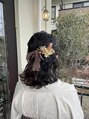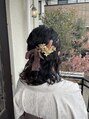 ハーフアップアレンジ♪中の髪もウェーブに巻いてゆるふわなスタイルに♪金箔や髪飾りで更に華やかなスタイルになります(*^^*)