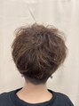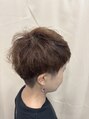 スタッフをカットカラーしました。髪は太く硬いので褪色したら赤味が出るため、毛先はオレンジ黄色くなるのですがそれを消すために、バイオレットがいいので、グロスピンクを入れて仕上げました。
