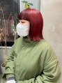 レッドカラー赤髪カシスワイドバングデザインカラー/ホットペッパービューティー