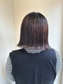 表面のみに細くブリーチハイライトが入っています。全体を明るくしなくても透明感を表現できます。ハイライトをした事がない方、してみたい方にもおすすめデザインです。