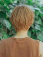 耳にかけることで、ボーイッシュな雰囲気が和らぐ耳かけショートスタイル!髪色もブリーチ有のダブルカラーで夏色に。柔らかなイエローベージュで女の子らしさを演出。前髪はうざバングで動きを出したスタイルになります。