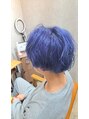 初カラーにてWブリーチ後にダークブルーにしました(^ ^)黄色味をできるだけ消したので、キレイに青味が出ていますね!
