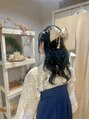 巻いている毛束にも金箔をつけて。大きいリボンとハーフアップの相性がとても良いスタイルです。