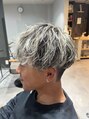 柏/men's ニュアンスパーマ 波巻きツイストスパイラル パープルカラー ブリーチデザイン フェザーパーマ