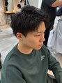 このスタイルをご希望の方は保立指名でのご予約お願いします。men's/メンズ/メンズパーマ/メンズカット/メンズカラー/学割U24/スパイラルパーマ/フェザーショート 刈り上げセンターパート 波打ちパーマ サーフカール グレー ブルーカラー 刈り上げショート