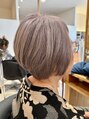 ブリーチを使わず白髪をぼかしながら染めました。ミルクティーベージュからラベンダーアッシュにカラーチェンジ