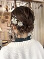 ボブスタイルを下の方でにまとめたシニヨンのスタイルです!きっちりと作らずに、柔らかい感じにまとめてます!