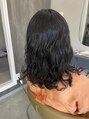 子育て中のママさんです。朝のスタイリングがしやすいようにウルフベースのカットに、ゆるふわウェーブをかさねて、春らしい軽やかなシルエットになりました。とてもお似合いでした。