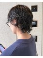 柔らかショートウルフパーマです。「黒髪×パーマ」って、じつはかなりの最強コンビです!ショートパーマは、メガネとの相性がとってもいいです。オシャレと実用を両立したい子に、是非試してほしいヘアスタイルです!