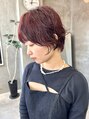 ワンカールくらいのゆるめのショートパーマヘア♪カラーはブリーチ無しでできるレッドカラーです!少し湿らせてオイルをつけるだけでスタイリングできます!♪