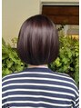 柔らかな前下がりスタイル。軽やかなボブにしたかったので襟足を少し見せて首の丸みに沿わせて軽やかにしました。カラーは、温かみを引き出すバイオレット9レベルを採用。頭皮につけないゼロタッチカラーで地肌への負担を最小限に抑えております。