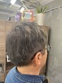 ネープは厚めの刈り上げでTOPは遊びを入れたツーブロックスタイル。サイドのボリュームを絞めることでスッキリ爽やかな印象に☆カラーリングは白髪ボカシでアッシュグレイをオン。表面だけハイライトで遊びをプラス♪