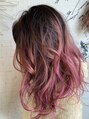 ピンクグラデーション巻いても良し、ストレートでも良しなスタイルです。