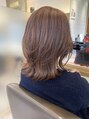 肩から少し下くらいの長さ表面には動きが出やすいように短めのレイヤーが入り、毛先にかけては軽やかな印象になるように!カラーは、ハイライトが入っていて、これにより、髪の立体感と動きがより強調され、柔らかな印象を与えています!