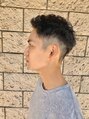 サイドから襟足にかけてツーブロックでスッキリ爽やかに。パーマをかけてジェルで簡単スタイリング!