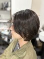 センターパートモテサラショートヘア。髪質改善で艶サラに。仕上げは+huntのWAXで。